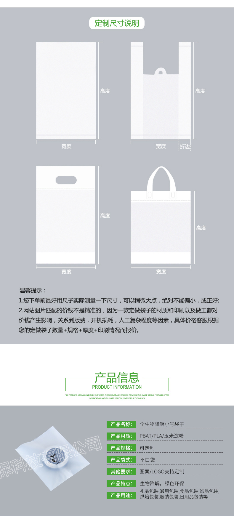 • 全生物降解小號袋子